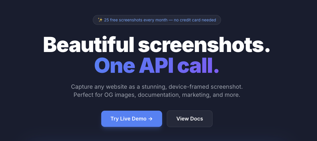 Capture any website as a stunning, device-framed screenshot. Perfect for OG images, documentation, marketing, and more.